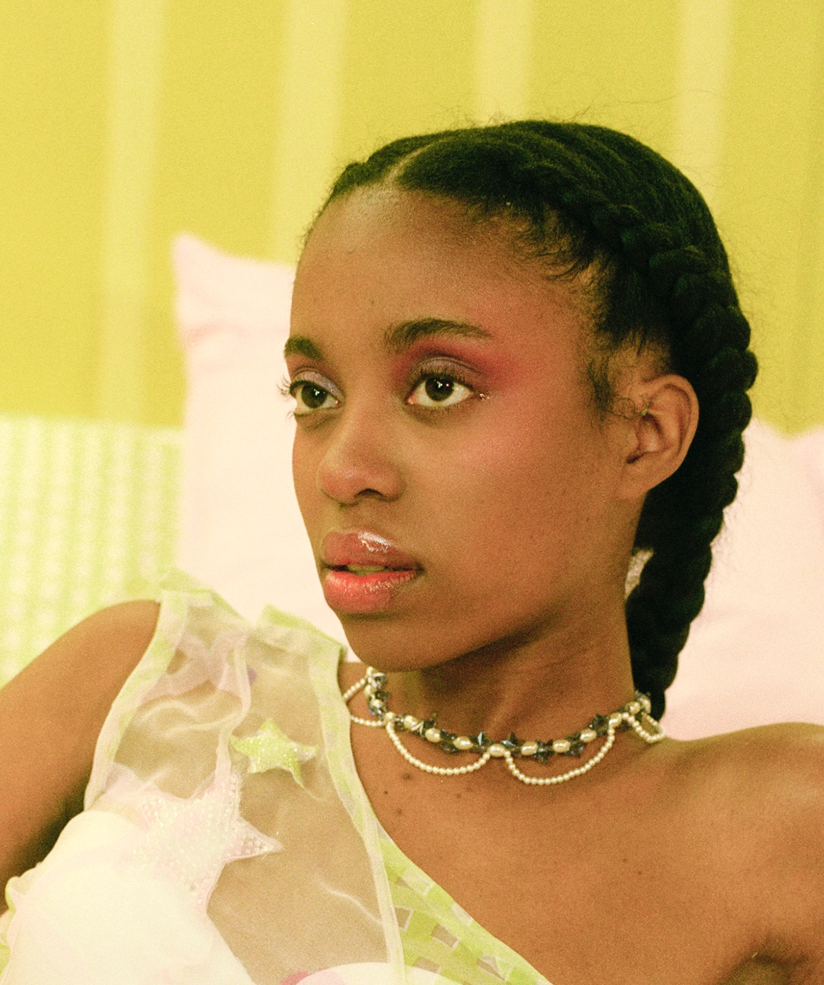 "pink pillow dress" - featuring the "shooting star" necklace and earrings and the flower power ring - photo courtesy of aman shakya, image featured on vogue runway